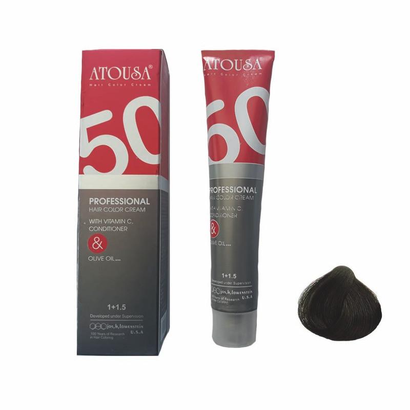 رنگ موی آتوسا N2 قهوه ای تیره حجم 50 میلی لیتر Atousa hair color No. 2, volume 50 ml, dark brown color