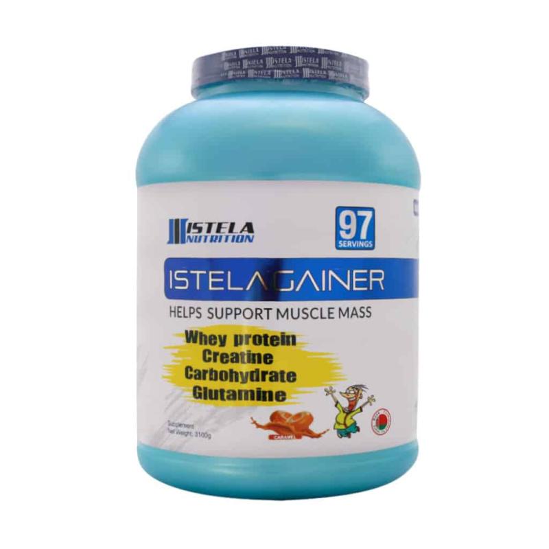 پودر گینر استلا نوتریشن ۳۱۰۰ گرمی ساخت ایران صاحب پروانه شرکت نوین کاران میلان نو و فرمولاسیون کشور بلاروس می باشد. گینر استلا نوعی مکمل افزایش وزن است که به شما کمک می کند عضله سازی کنید و توده بدنی سالم تری بسازید. این محصول به گونه ای طراحی شده اند که کالری بیشتری دریافت کنید. این مکمل باید در طول روز مصرف شود و ممکن است به شما در رسیدن به وزن مورد نظر خود در بازه زمانی کوتاه تری کمک کنند. گینر Istela از محصولات غذایی پرکالری مانند پروتئین وی و کربوهیدرات ها تشکیل شده است که بدن شما را به شیوه ای سالم با افزایش ماهیچه و چربی حجیم می کند.