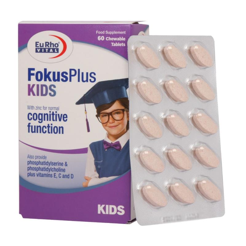 قرص جویدنی فوکوس پلاس کیدز یوروویتال 60 عددی Eurhovital Fokus Plus Kids 60 Chewable Tablets