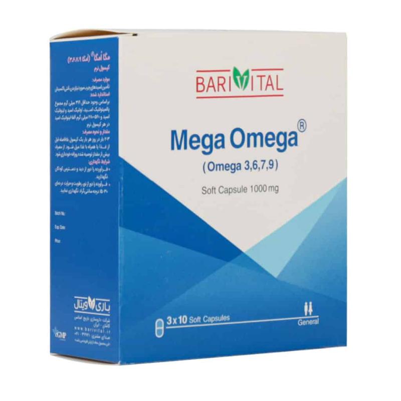 سافت ژل مگا امگا 3.6.7.9 باریویتال 1000 میلی گرم بلیستر 30 عددی MEGA OMEGA3-6-7-9 1000mg Cap-30