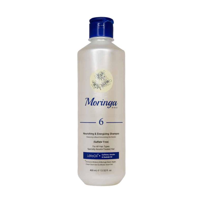شامپو مغذی و انرژیبخش 6 مناسب انواع مو به ویژه موهای کراتینه بدون سولفات 400 میلی لیتر Moringa EMO Nourishing and Energizing Shampoo 6 Sulfate Free all Hair especially Keratin Treated Hair