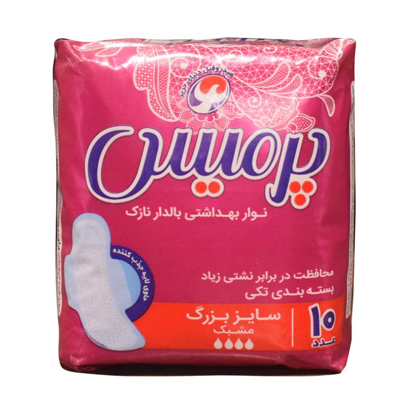 نوار بهداشتی مسافرتی پرميس لایه مشبک نازک سایز بزرگ بسته 10 عددی parmiss sanitary napkins 10pcs