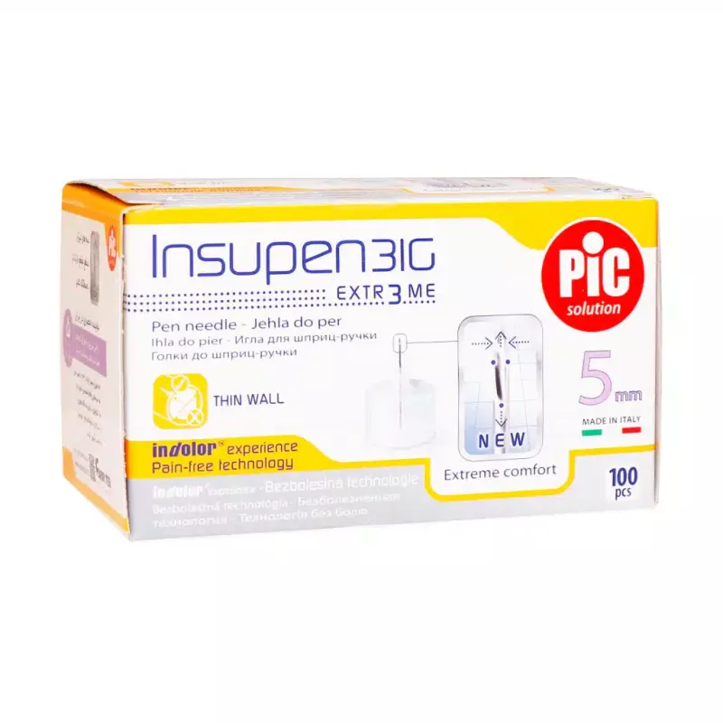 سوزن قلم انسولین 5 میلی متر پیک سلوشن 100 عددی Pic Solution Insulin Pen Needle 5mm 100 pics