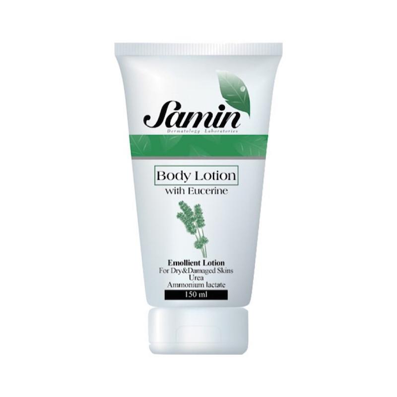 لوسیون بدن حاوی اوسرین ثمین 150 میلی لیتر Samin Body Lotion With Eucerine For Dry And Damaged Skin 150 ml