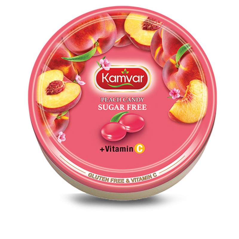آبنبات بدون قند و رژیمی حاوی ویتامین سی طعم هلو قوطی 64 عددی Sugar Free Candy